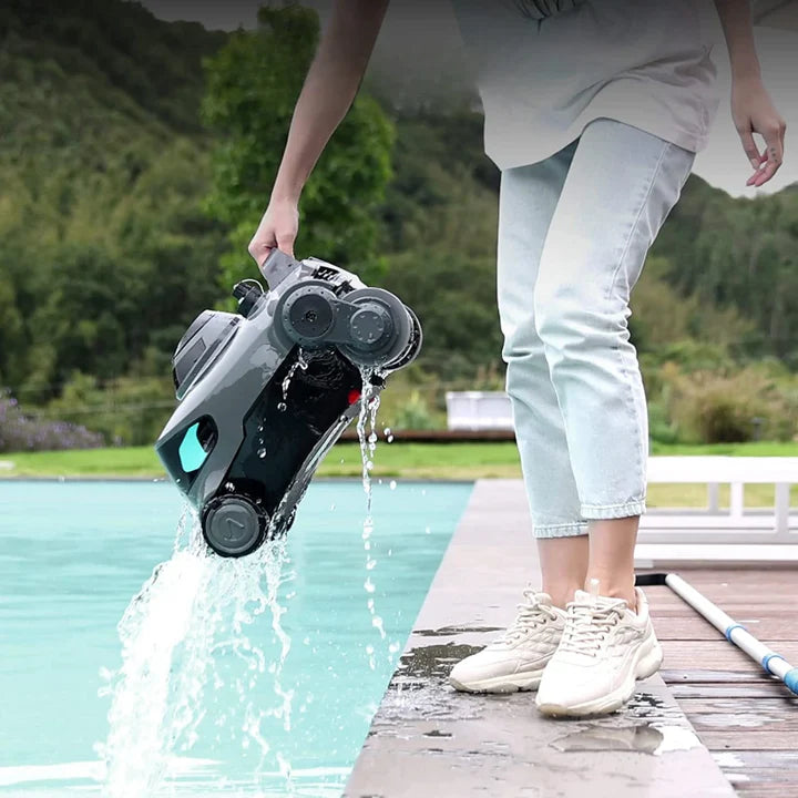 Dieser leistungsstarke Poolreinigungsroboter ist kompakt, kabellos und für mühelosen Einsatz entwickelt – er bietet eine Tiefenreinigung, intelligente Navigation und schnelle Ergebnisse, ganz ohne Aufwand. Dank kabellosem Betrieb ist die Handhabung einfach und sicher. Er reinigt den Boden, die Wände sowie die Wasserlinie und arbeitet mit einem leisen, hocheffizienten Motor, der bis zu 270 Liter pro Minute filtert.